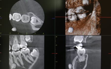 歯科用CTを使うと、歯の根や顎の骨の状態、神経の位置などを立体画像で把握できます。平面画像から情報を得る従来のレントゲン写真とはくらべものにならないほど、詳細な情報を得られるのが特徴です。「三好歯科 自由が丘」では、矯正治療で使用するセファロ撮影も可能なモリタ製の歯科用CTを導入しています。