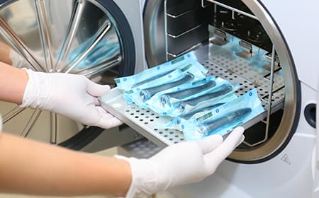 治療に使用した器具は、毎回手による洗浄と超音波洗浄を施した後、滅菌機での処理を行っています。「三好歯科 自由が丘」では、世界でもっとも厳しいとされるヨーロッパの滅菌基準「クラスB」をクリアした滅菌機を導入しており、歯科先進国と呼ばれる国々と同水準の衛生環境を整えております。