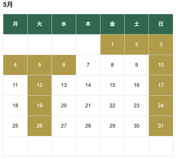 【2026年5月の休診日のご案内】