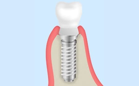 歯は根の部分が顎の骨にしっかり埋まって(結合して)いることではじめて、「しっかり噛める」状態となります。この根の部分を人工的なネジで代用し、骨の中にネジを埋め込んで歯の構造を人工的に一からつくっていく処置がインプラント治療です。