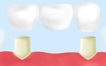 失ってしまった歯の両隣にまだ使える天然歯が残っている場合に、その前後の歯を柱(支台)として橋を渡すように連なった人工歯を装着する処置です。